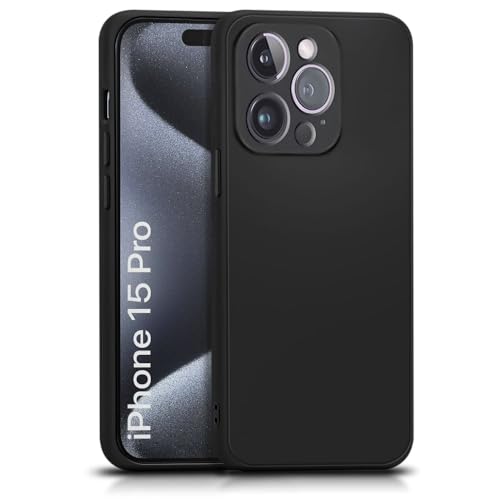 Back Cover for Apple iPhone 15 Pro | Ultra Slim Soft Rubberised Case | Inner Velvet Fabric Lining | Matte Silicone Flexible Mobile Case | Camera Protection – Black