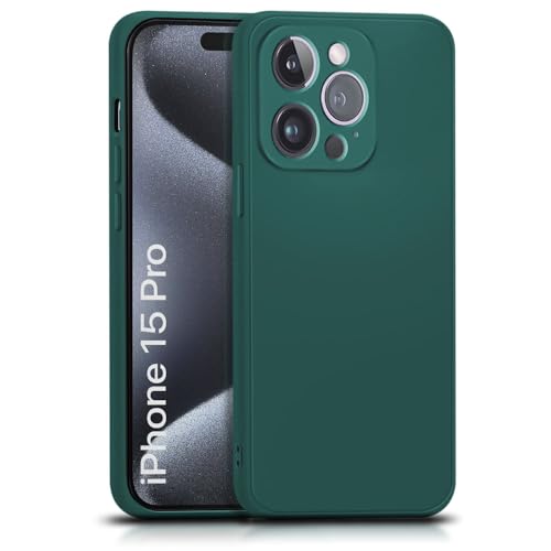 Back Cover for Apple iPhone 15 Pro | Ultra Slim Soft Rubberised Case | Inner Velvet Fabric Lining | Matte Silicone Flexible Mobile Case | Camera Protection – Green