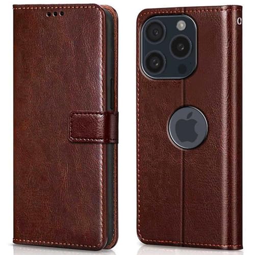 Shock Proof Flip Cover Back Case for Apple Iphone 15 Pro | Magnetic Wallet Leather Case with Stand
