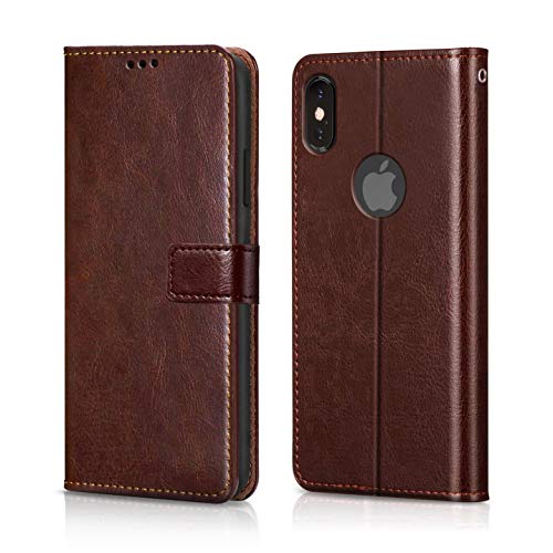 Shock Proof Flip Cover Back Case for Apple Iphone X | Magnetic Wallet Leather Case with Stand