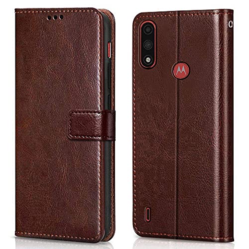 Shock Proof Flip Cover Back Case for Motorola Moto E7 Power | Magnetic Wallet Leather Case with Stand