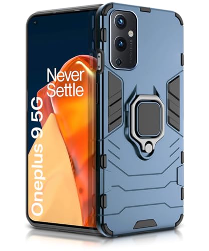 Shock Proof Back Case Mobile Cover for 1+ OnePlus 9 5G | Back Cover Case (Tough Armor | Hybrid PC + TPU | Ring Holder & in-Built Kickstand | Blue)