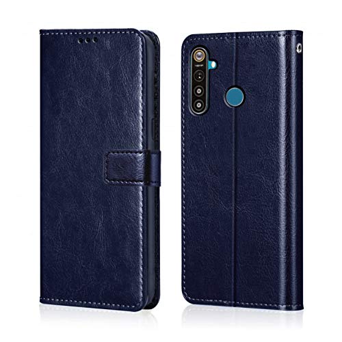 Shock Proof Flip Cover Back Case for Realme 5 Pro | Magnetic Wallet Leather Case with Stand