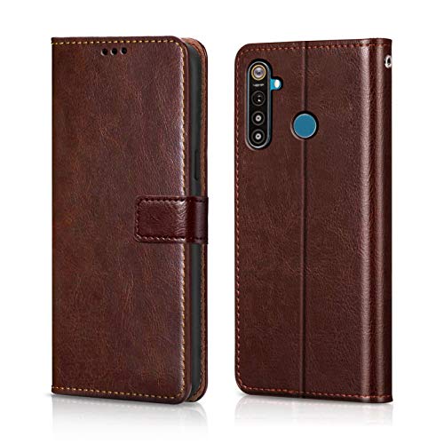 Shock Proof Flip Cover Back Case for Realme 5 / 5I / 5S / Narzo 10 | Magnetic Wallet Leather Case with Stand