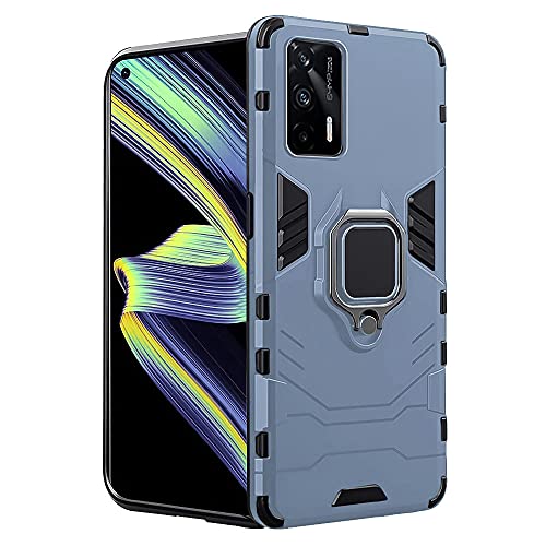 Shock Proof Back Case Mobile Cover for Realme X7 Max | Realme GT 5G | Back Cover Case (Tough Armor | Hybrid PC + TPU | Ring Holder & in-Built Kickstand | Blue)