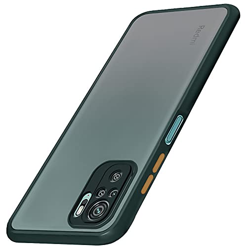 Polycarbonate Translucent Hybrid Back Cover for Redmi Note 10 | Note 10s | Smoked Matte Back | 360 Degree Protection | Protective Hard Case (Green Bumper)