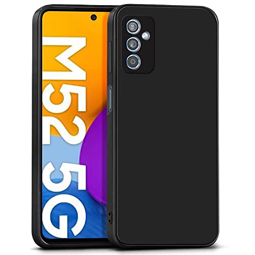 Ultra Slim Soft Rubberised Back Cover Case for Samsung Galaxy M52 5G | Inner Velvet Fabric Lining | Matte Silicone Flexible Camera Protection Back Case Black