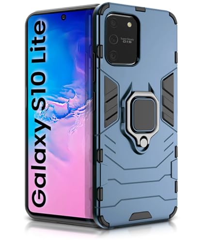 Shock Proof Back Case Mobile Cover for Samsung Galaxy S10 Lite | Back Cover Case (Tough Armor | Hybrid PC + TPU | Ring Holder & inBuilt Kickstand | Blue)