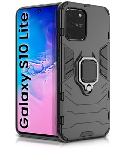 Shock Proof Back Case Mobile Cover for Samsung Galaxy S10 Lite | Back Cover Case (Tough Armor | Hybrid PC + TPU | Ring Holder & in-Built Kickstand | Black)