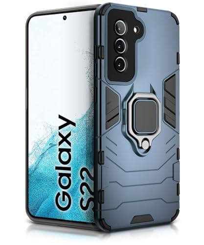 Shock Proof Back Case Mobile Cover for Samsung Galaxy S22 5G | Back Cover Case (Tough Armor | Hybrid PC + TPU | Ring Holder & in-Built Kickstand | Blue)