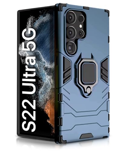 Shock Proof Back Case Mobile Cover for Samsung Galaxy S22 Ultra 5G | Back Cover Case (Tough Armor | Hybrid PC + TPU | Ring Holder & in-Built Kickstand | Blue)