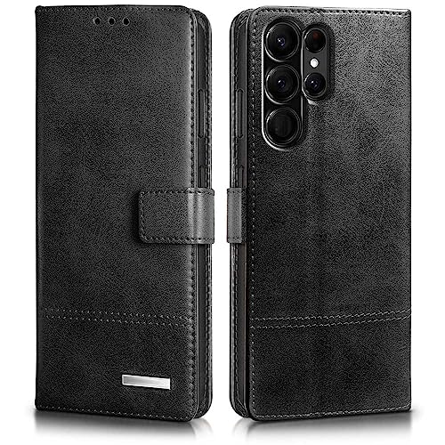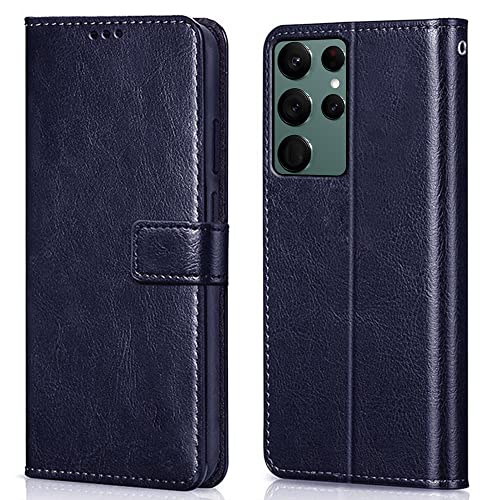 Shock Proof Flip Cover Back Case for Samsung Galaxy S22 Ultra | Magnetic Wallet Leather Case with Stand