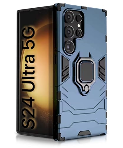 Shock Proof Back Case Mobile Cover for Samsung Galaxy S24 Ultra 5G | Back Cover Case (Tough Armor | Hybrid PC + TPU | Ring Holder & in-Built Kickstand | Blue)