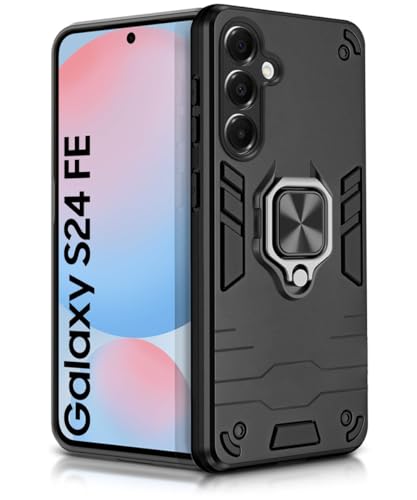 Shock Proof Back Case Mobile Cover for Samsung Galaxy S24 FE | Back Cover Case (Tough Armor | Hybrid PC + TPU | Ring Holder & in-Built Kickstand | Black)