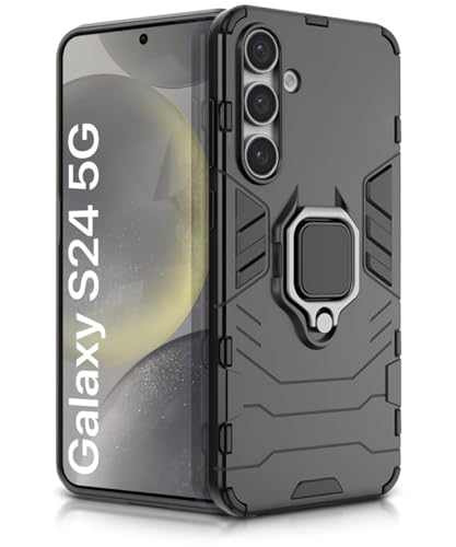 Shock Proof Back Case Mobile Cover for Samsung Galaxy S24 5G | Back Cover Case (Tough Armor | Hybrid PC + TPU | Ring Holder & in-Built Kickstand | Black)