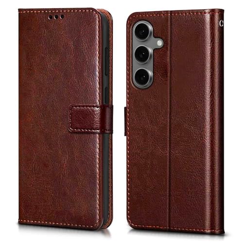 Shock Proof Flip Cover Back Case for Samsung Galaxy S24 5G Shock Proof Flip Cover Flexible Card Pockets Wallet & Stand | Magnetic Wallet Leather Case with Stand