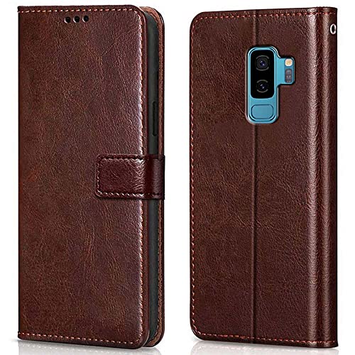 Shock Proof Flip Cover Back Case for Samsung Galaxy S9 Plus | Magnetic Wallet Leather Case with Stand