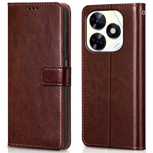 Shock Proof Flip Cover Back Case for Tecno Pop 8 | Magnetic Wallet Leather Case with Stand