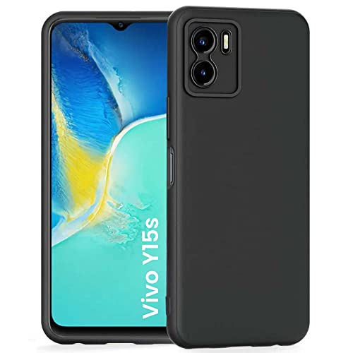 Back Cover for Vivo Y15s | Ultra Slim Soft Rubberised Case | Inner Velvet Fabric Lining | Matte Silicone Flexible Mobile Case | Camera Protection – Black