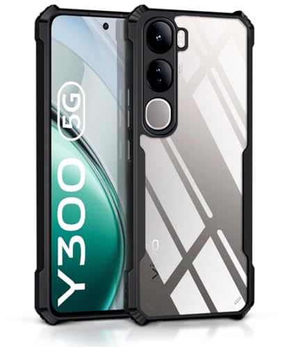 TPU+PC Shock Proof Clear Protective Back Case for Vivo Y300 5G – Airedge Technology | 360 Degree Camera Protection | Transparent Hybrid Back Case Mobile Cover – Black