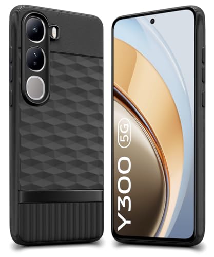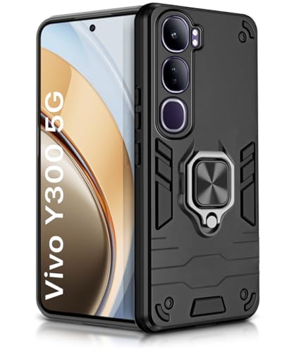 Shock Proof Back Case Mobile Cover for Vivo Y300 5G | Back Cover Case (Tough Armor | Hybrid PC + TPU | Ring Holder & inBuilt Kickstand | Black)