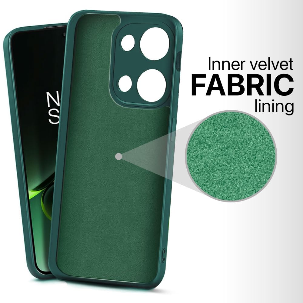 Back Cover for 1+ OnePlus Nord 3 5G | Ultra Slim Soft Rubberised Case | Inner Velvet Fabric Lining | Matte Silicone Flexible Mobile Case | Camera Protection – Green