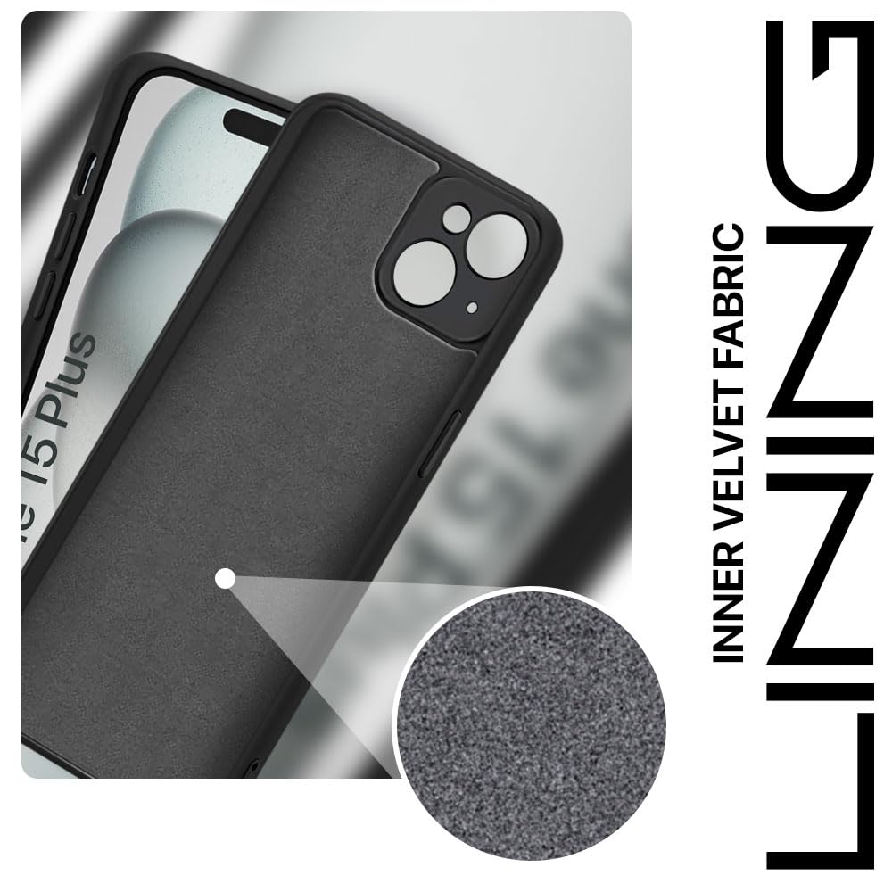 Back Cover for Apple iPhone 15 Plus | Ultra Slim Soft Rubberised Case | Inner Velvet Fabric Lining | Matte Silicone Flexible Mobile Case | Camera Protection – Black