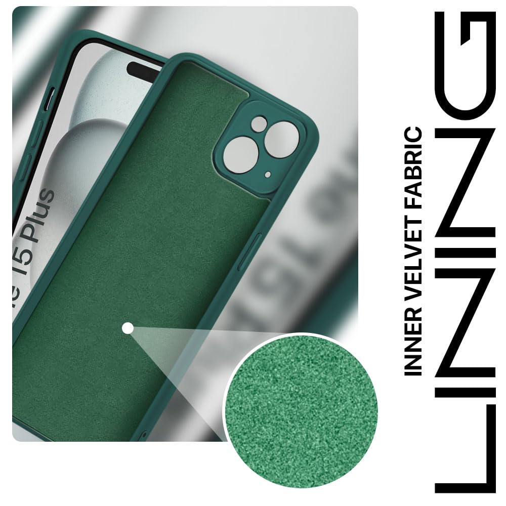 Back Cover for Apple iPhone 15 Plus | Ultra Slim Soft Rubberised Case | Inner Velvet Fabric Lining | Matte Silicone Flexible Mobile Case | Camera Protection – Green