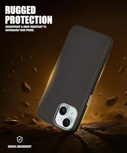 Back Cover for iPhone 15 | Shockproof Tough Leather Texture Hard Mobile Case | Ultra Slim Non-Slip Grip | Inner Velvet Fabric | Metal Camera Ring ? Black