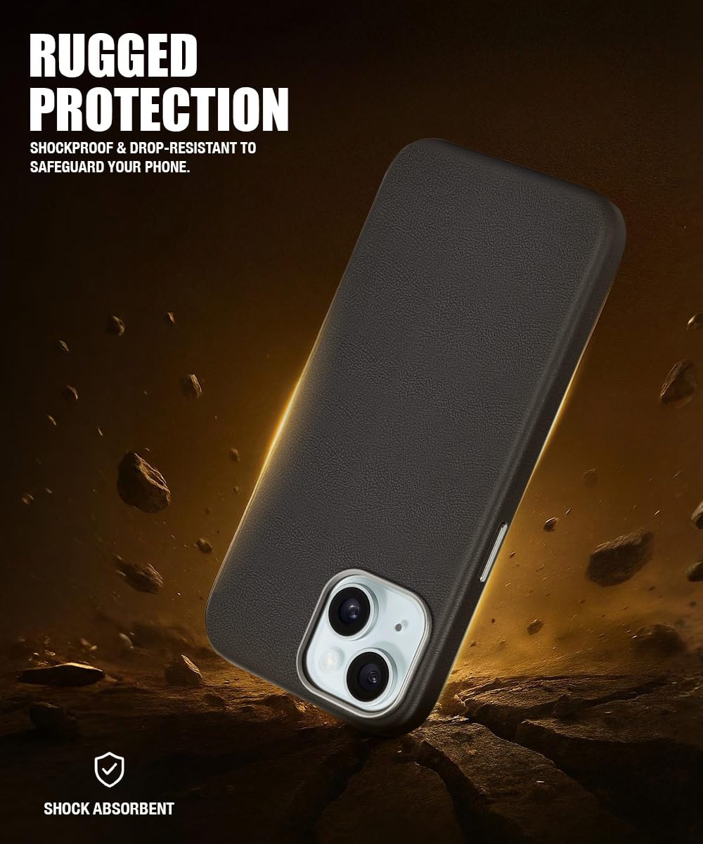 The Back Cover for iPhone 15 | Shockproof Tough Leather Texture Hard Mobile Case | Ultra Slim Non-Slip Grip | Inner Velvet Fabric | Metal Camera Ring ? Black is designed with premium quality materials to provide superior protection, durability, and style for your smartphone. It offers a perfect balance between functionality and aesthetics, ensuring your device stays safe from scratches, impacts, and daily wear. Engineered with precision, it features accurate cutouts for ports, buttons, and cameras, making it highly convenient for everyday use. The slim and lightweight design ensures that your device retains its sleek profile without adding unnecessary bulk. Whether it is a nano film tempered glass, a hybrid back case, or a camera lens protector, each product is created with attention to detail to enhance the user experience and extend the life of your smartphone. The material used ensures long-lasting clarity, anti-scratch performance, and resistance against fingerprints and smudges. It is the ideal choice for users who want both style and substance in their smartphone accessories. This product from reflects innovation and craftsmanship, making it a reliable accessory that safeguards your investment while maintaining modern appeal.