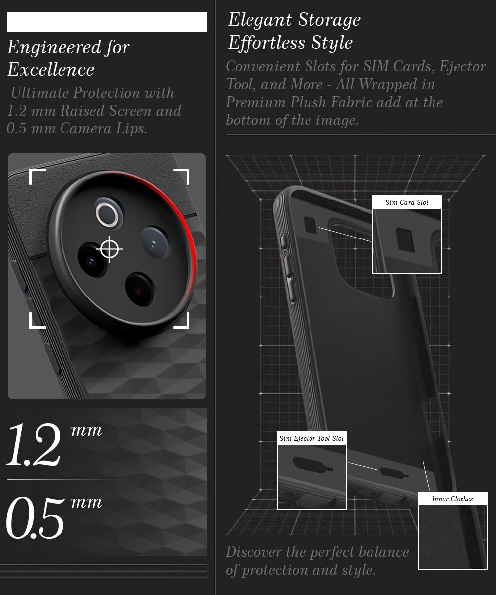 The Back Cover for iQOO Z10 5G | Vivo T4 5G with Hexa Cube Design | Ultra Slim Soft Rubberised Case | Inner Velvet Fabric | Matte Silicone Flexible Mobile Case | Camera Protection – Black is designed with premium quality materials to provide superior protection, durability, and style for your smartphone. It offers a perfect balance between functionality and aesthetics, ensuring your device stays safe from scratches, impacts, and daily wear. Engineered with precision, it features accurate cutouts for ports, buttons, and cameras, making it highly convenient for everyday use. The slim and lightweight design ensures that your device retains its sleek profile without adding unnecessary bulk. Whether it is a nano film tempered glass, a hybrid back case, or a camera lens protector, each product is created with attention to detail to enhance the user experience and extend the life of your smartphone. The material used ensures long-lasting clarity, anti-scratch performance, and resistance against fingerprints and smudges. It is the ideal choice for users who want both style and substance in their smartphone accessories. This product from reflects innovation and craftsmanship, making it a reliable accessory that safeguards your investment while maintaining modern appeal.