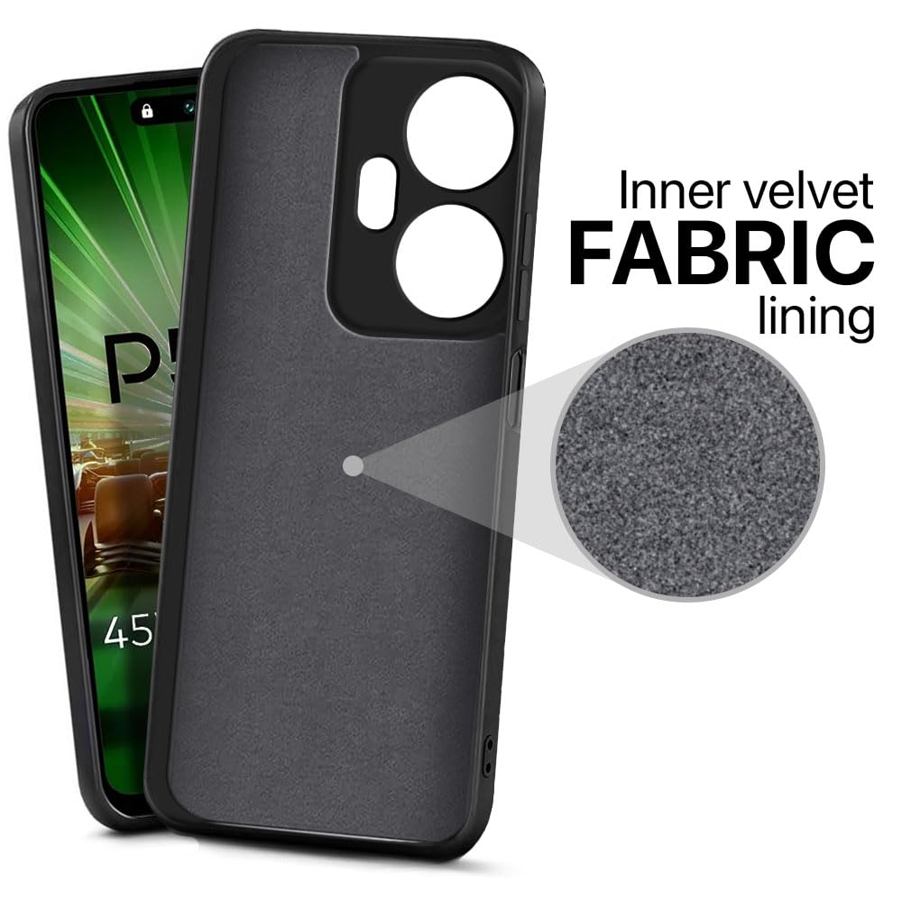 Back Cover for Itel P55 Plus 4G | Ultra Slim Soft Rubberised Case | Inner Velvet Fabric Lining | Matte Silicone Flexible Mobile Case | Camera Protection – Black
