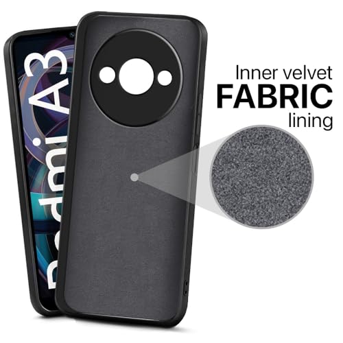 Back Cover for Mi Redmi A3 | Redmi A3X | Poco C61 | Ultra Slim Soft Rubberised Case | Inner Velvet Fabric Lining | Matte Silicone Flexible Mobile Case | Camera Protection – Black
