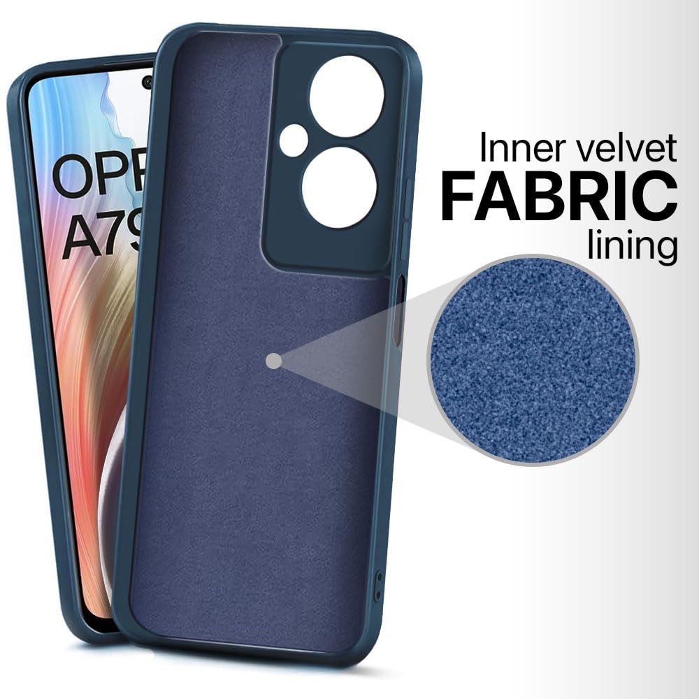 Back Cover for Oppo A79 5G | Ultra Slim Soft Rubberised Case | Inner Velvet Fabric Lining | Matte Silicone Flexible Mobile Case | Camera Protection – Blue