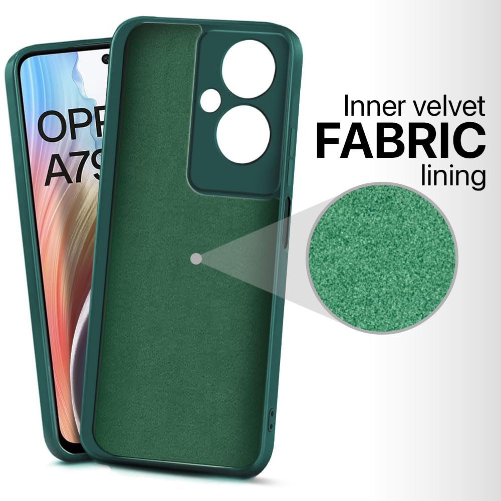 Back Cover for Oppo A79 5G | Ultra Slim Soft Rubberised Case | Inner Velvet Fabric Lining | Matte Silicone Flexible Mobile Case | Camera Protection – Green