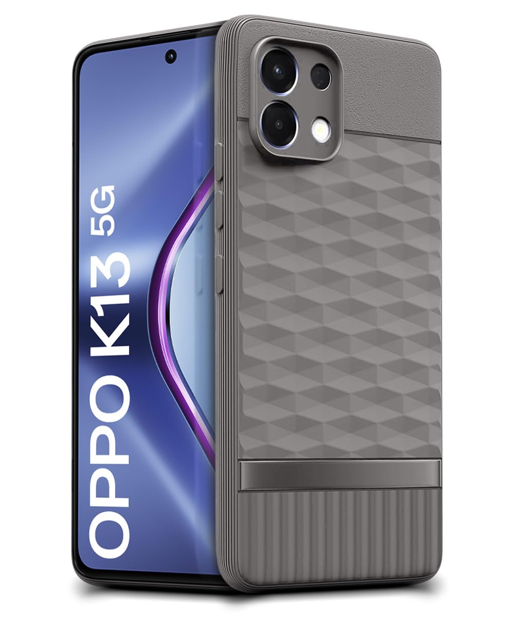 Back Cover for Oppo K13 5G with Hexa Cube Design | Ultra Slim Soft Rubberised Case | Inner Velvet Fabric | Matte Silicone Flexible Mobile Case | Camera Protection – Grey