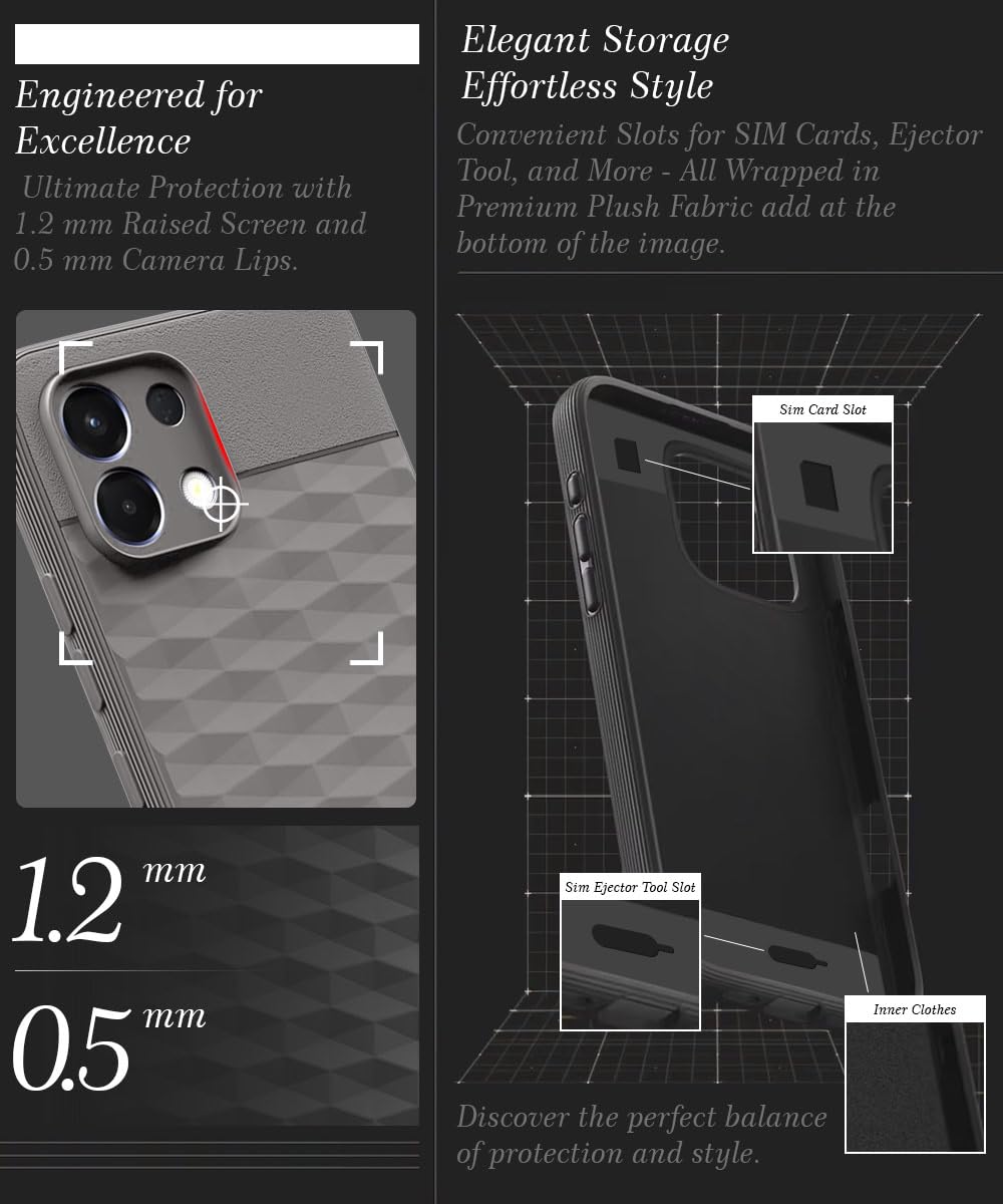 The Back Cover for Oppo K13 5G with Hexa Cube Design | Ultra Slim Soft Rubberised Case | Inner Velvet Fabric | Matte Silicone Flexible Mobile Case | Camera Protection – Grey is designed with premium quality materials to provide superior protection, durability, and style for your smartphone. It offers a perfect balance between functionality and aesthetics, ensuring your device stays safe from scratches, impacts, and daily wear. Engineered with precision, it features accurate cutouts for ports, buttons, and cameras, making it highly convenient for everyday use. The slim and lightweight design ensures that your device retains its sleek profile without adding unnecessary bulk. Whether it is a nano film tempered glass, a hybrid back case, or a camera lens protector, each product is created with attention to detail to enhance the user experience and extend the life of your smartphone. The material used ensures long-lasting clarity, anti-scratch performance, and resistance against fingerprints and smudges. It is the ideal choice for users who want both style and substance in their smartphone accessories. This product from reflects innovation and craftsmanship, making it a reliable accessory that safeguards your investment while maintaining modern appeal.