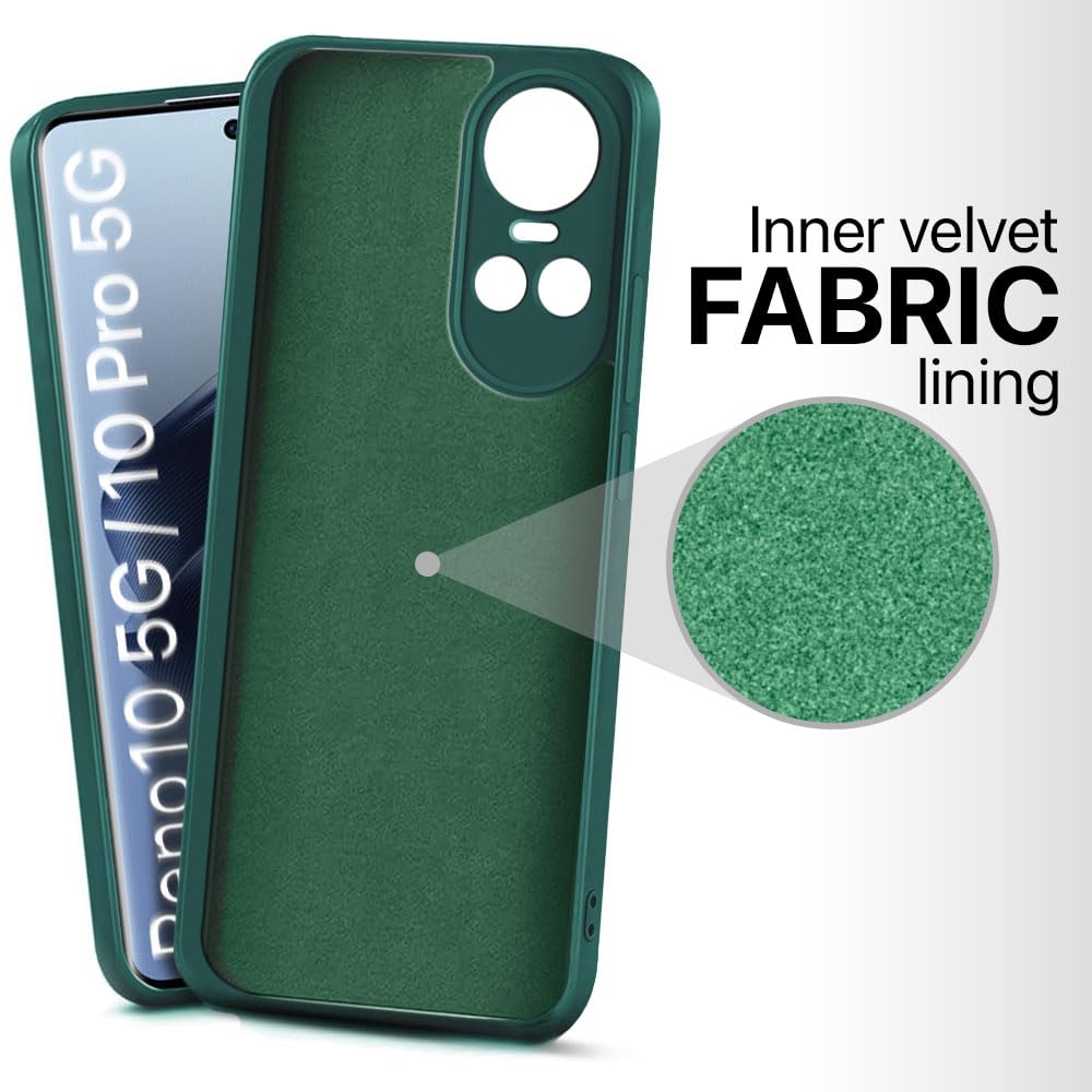 Back Cover for Oppo Reno 10 | Reno 10 Pro 5G | Ultra Slim Soft Rubberised Case | Inner Velvet Fabric Lining | Matte Silicone Flexible Mobile Case | Camera Protection – Green