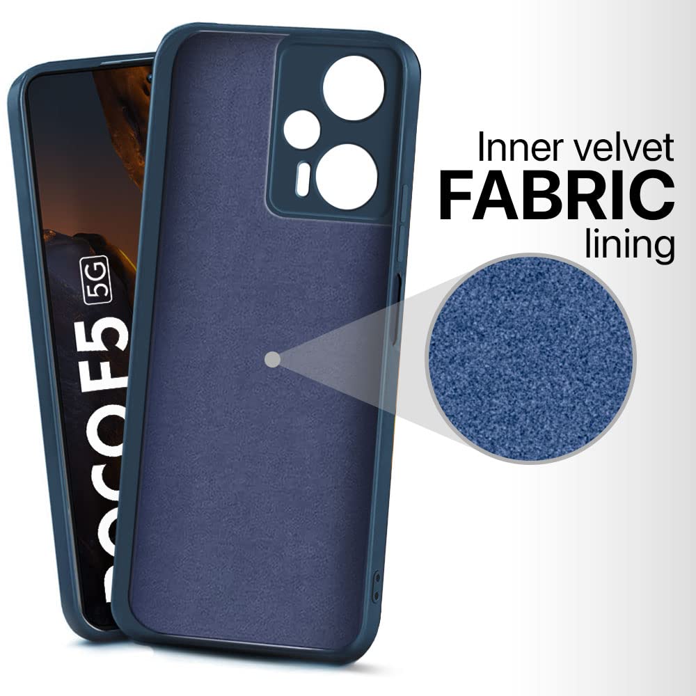 Back Cover for Poco F5 5G | Ultra Slim Soft Rubberised Case | Inner Velvet Fabric Lining | Matte Silicone Flexible Mobile Case | Camera Protection – Blue