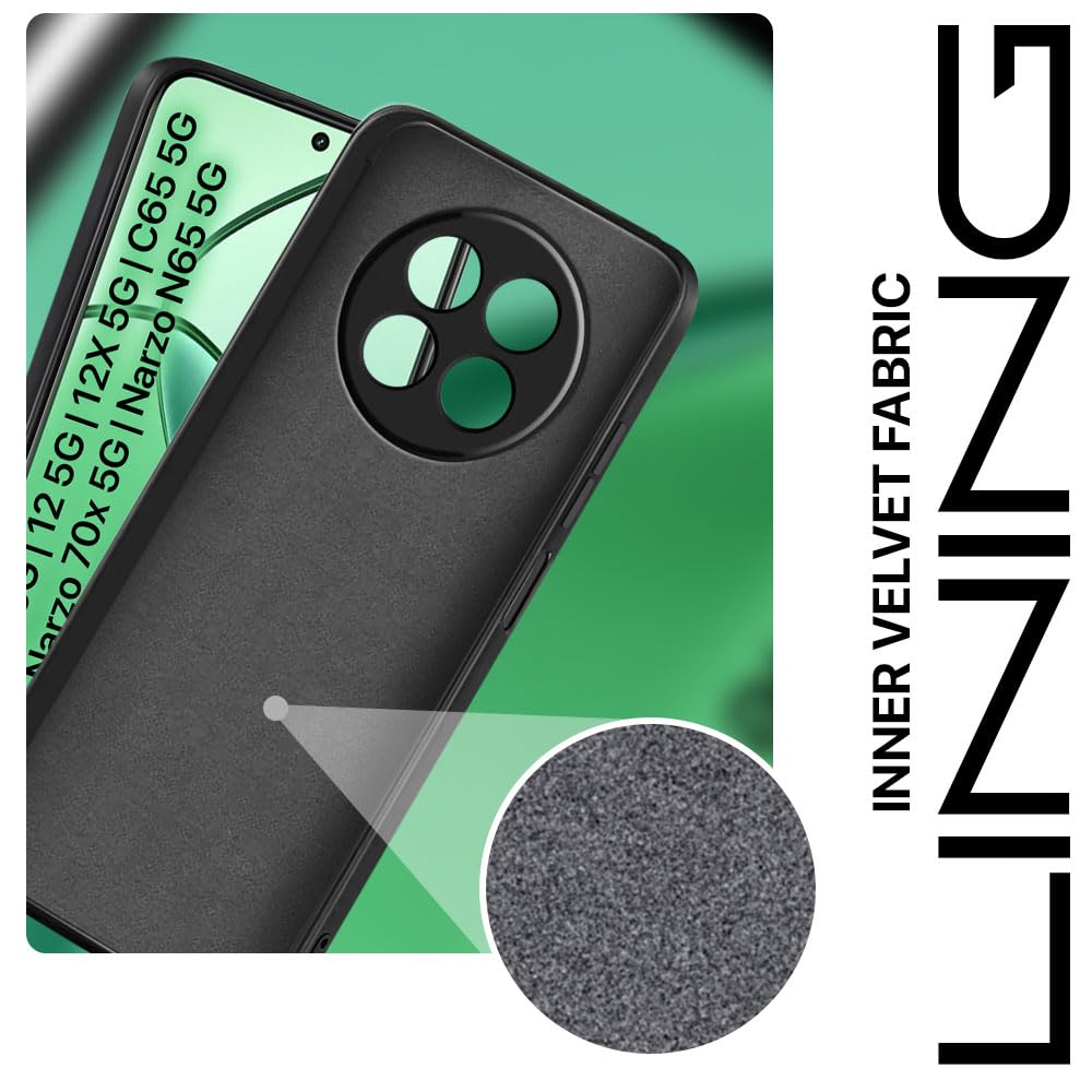 Back Cover for Realme Narzo 70X 5G | 12 5G | 12X 5G | C65 | N65 | Slim Soft Rubberised Case | Inner Velvet Fabric Lining | Matte Silicone Flexible Mobile Case | Camera Protection – Black