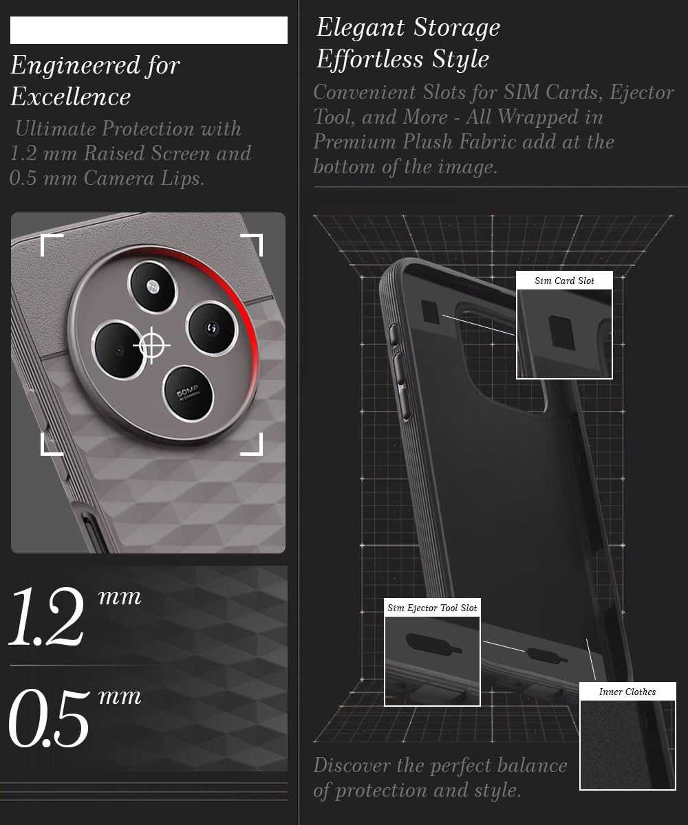 The Back Cover for Redmi A4 5G | Poco C75 | 14C 5G | Poco M7 with Hexa Cube Design | Ultra Slim Rubberised Case | Inner Velvet Fabric | Silicone Flexible Mobile Case | Camera Protection – Grey is designed with premium quality materials to provide superior protection, durability, and style for your smartphone. It offers a perfect balance between functionality and aesthetics, ensuring your device stays safe from scratches, impacts, and daily wear. Engineered with precision, it features accurate cutouts for ports, buttons, and cameras, making it highly convenient for everyday use. The slim and lightweight design ensures that your device retains its sleek profile without adding unnecessary bulk. Whether it is a nano film tempered glass, a hybrid back case, or a camera lens protector, each product is created with attention to detail to enhance the user experience and extend the life of your smartphone. The material used ensures long-lasting clarity, anti-scratch performance, and resistance against fingerprints and smudges. It is the ideal choice for users who want both style and substance in their smartphone accessories. This product from reflects innovation and craftsmanship, making it a reliable accessory that safeguards your investment while maintaining modern appeal.