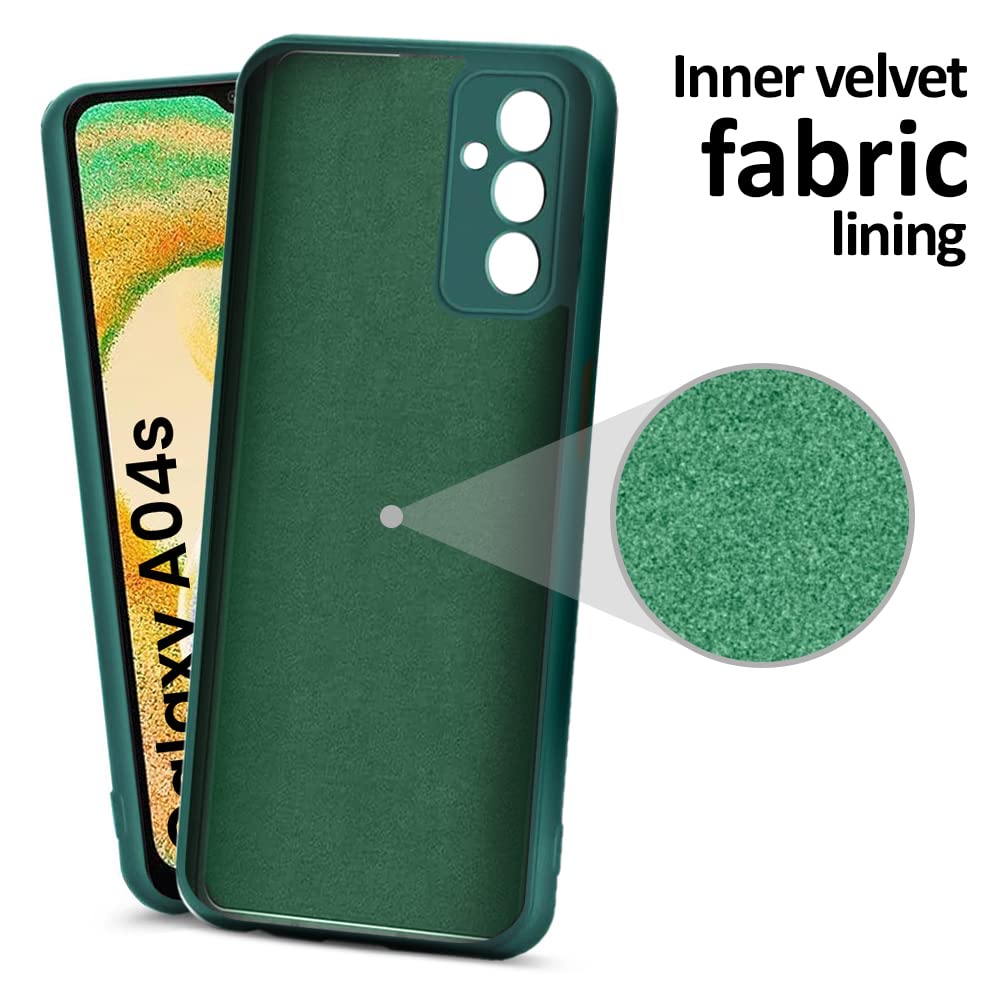 Back Cover for Samsung Galaxy A04s | Ultra Slim Soft Rubberised Case | Inner Velvet Fabric Lining | Matte Silicone Flexible Mobile Case | Camera Protection – Green