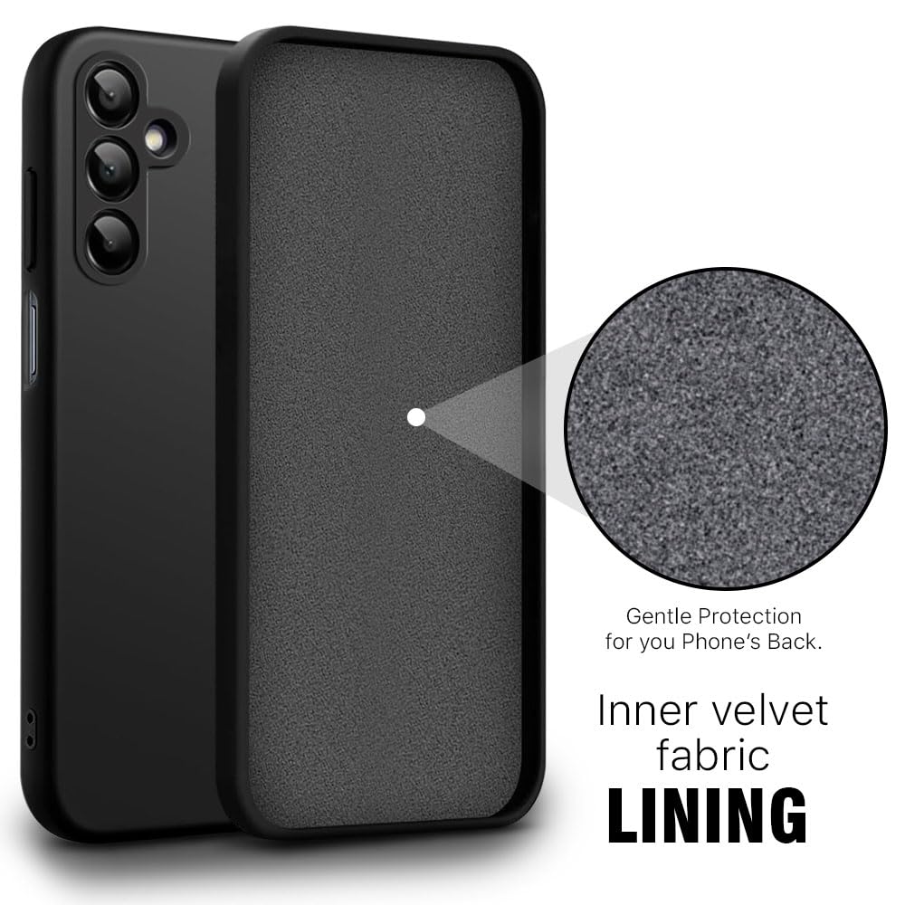 Back Cover for Samsung Galaxy M16 5G | Galaxy F16 5G | Ultra Slim Soft Rubberised Case | Inner Velvet Fabric Lining | Matte Silicone Flexible Mobile Case | Camera Protection (Black)