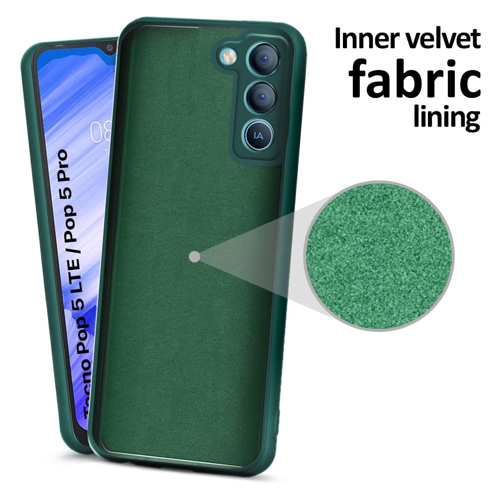 Back Cover for Tecno Pop 5 Pro | Tecno Pop 5 LTE | Ultra Slim Soft Rubberised Case | Inner Velvet Fabric Lining | Matte Silicone Flexible Mobile Case | Camera Protection – Green