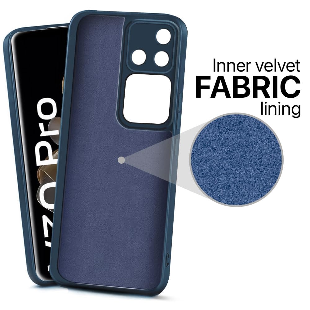 Back Cover for Vivo V30 Pro | Ultra Slim Soft Rubberised Case | Inner Velvet Fabric Lining | Matte Silicone Flexible Mobile Case | Camera Protection – Blue