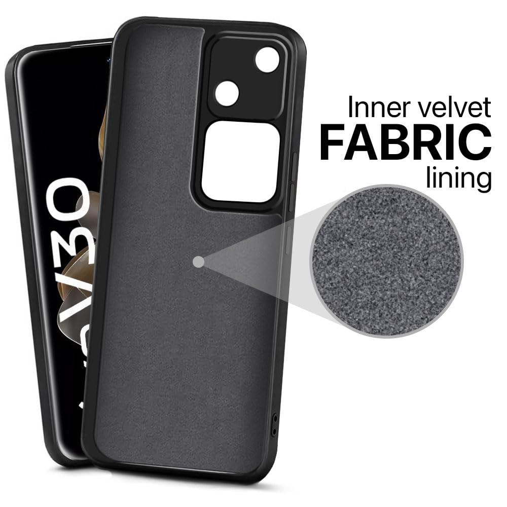 Back Cover for Vivo V30 | Ultra Slim Soft Rubberised Case | Inner Velvet Fabric Lining | Matte Silicone Flexible Mobile Case | Camera Protection – Black