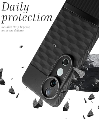 Back Cover for Vivo V40 | V40 Pro 5G | T3 Ultra 5G with Hexa Cube Design | Ultra Slim Soft Case | Inner Velvet Fabric | Matte Silicone Flexible Mobile Case | Camera Protection – Black
