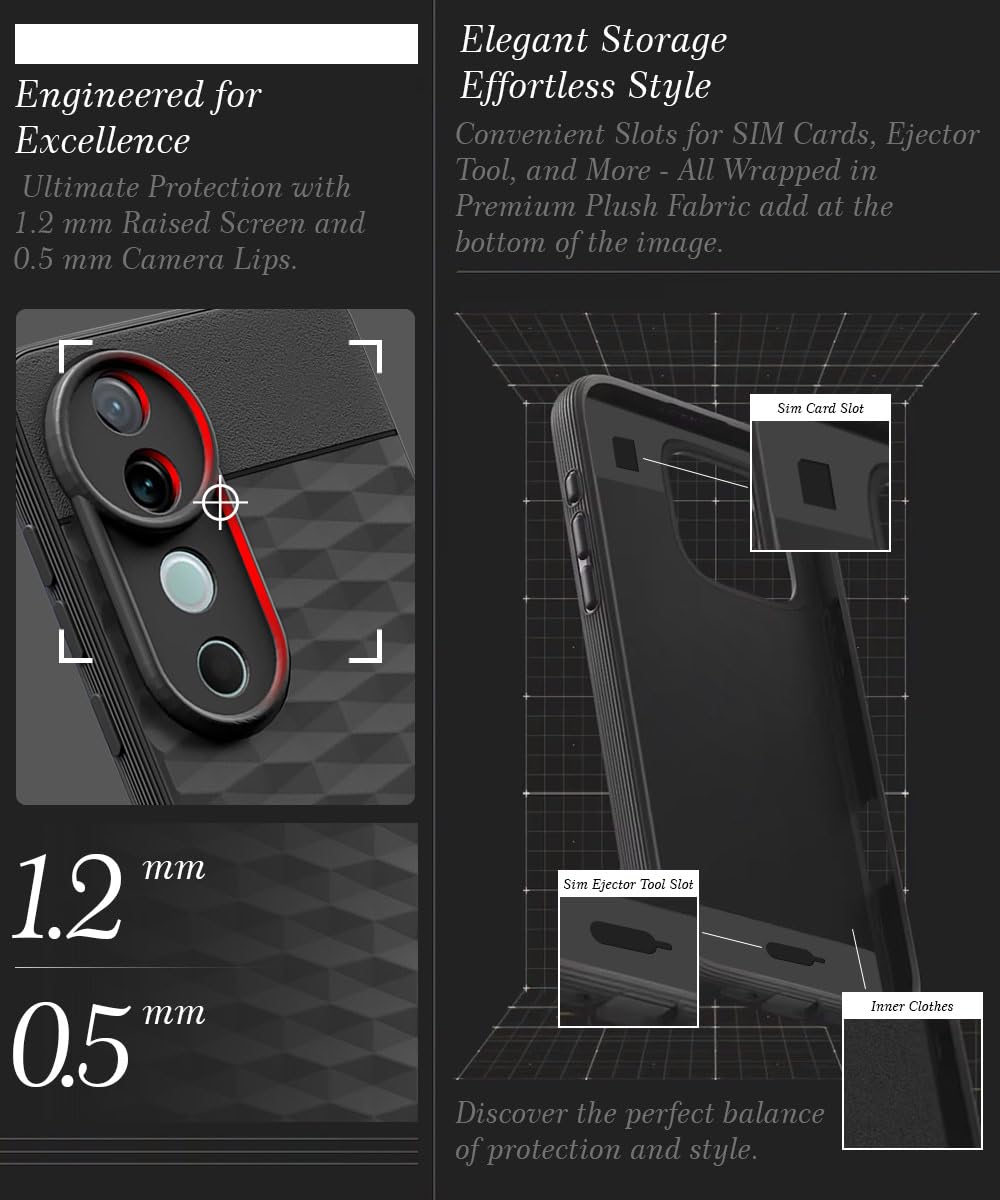 The Back Cover for Vivo V40 | V40 Pro 5G | T3 Ultra 5G with Hexa Cube Design | Ultra Slim Soft Case | Inner Velvet Fabric | Matte Silicone Flexible Mobile Case | Camera Protection – Black is designed with premium quality materials to provide superior protection, durability, and style for your smartphone. It offers a perfect balance between functionality and aesthetics, ensuring your device stays safe from scratches, impacts, and daily wear. Engineered with precision, it features accurate cutouts for ports, buttons, and cameras, making it highly convenient for everyday use. The slim and lightweight design ensures that your device retains its sleek profile without adding unnecessary bulk. Whether it is a nano film tempered glass, a hybrid back case, or a camera lens protector, each product is created with attention to detail to enhance the user experience and extend the life of your smartphone. The material used ensures long-lasting clarity, anti-scratch performance, and resistance against fingerprints and smudges. It is the ideal choice for users who want both style and substance in their smartphone accessories. This product from reflects innovation and craftsmanship, making it a reliable accessory that safeguards your investment while maintaining modern appeal.