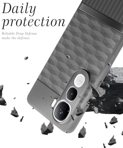 Back Cover for Vivo Y400 Pro 5G with Hexa Cube Design | Ultra Slim Soft Rubberised Case | Inner Velvet Fabric | Matte Silicone Flexible Mobile Case | Camera Protection – Grey