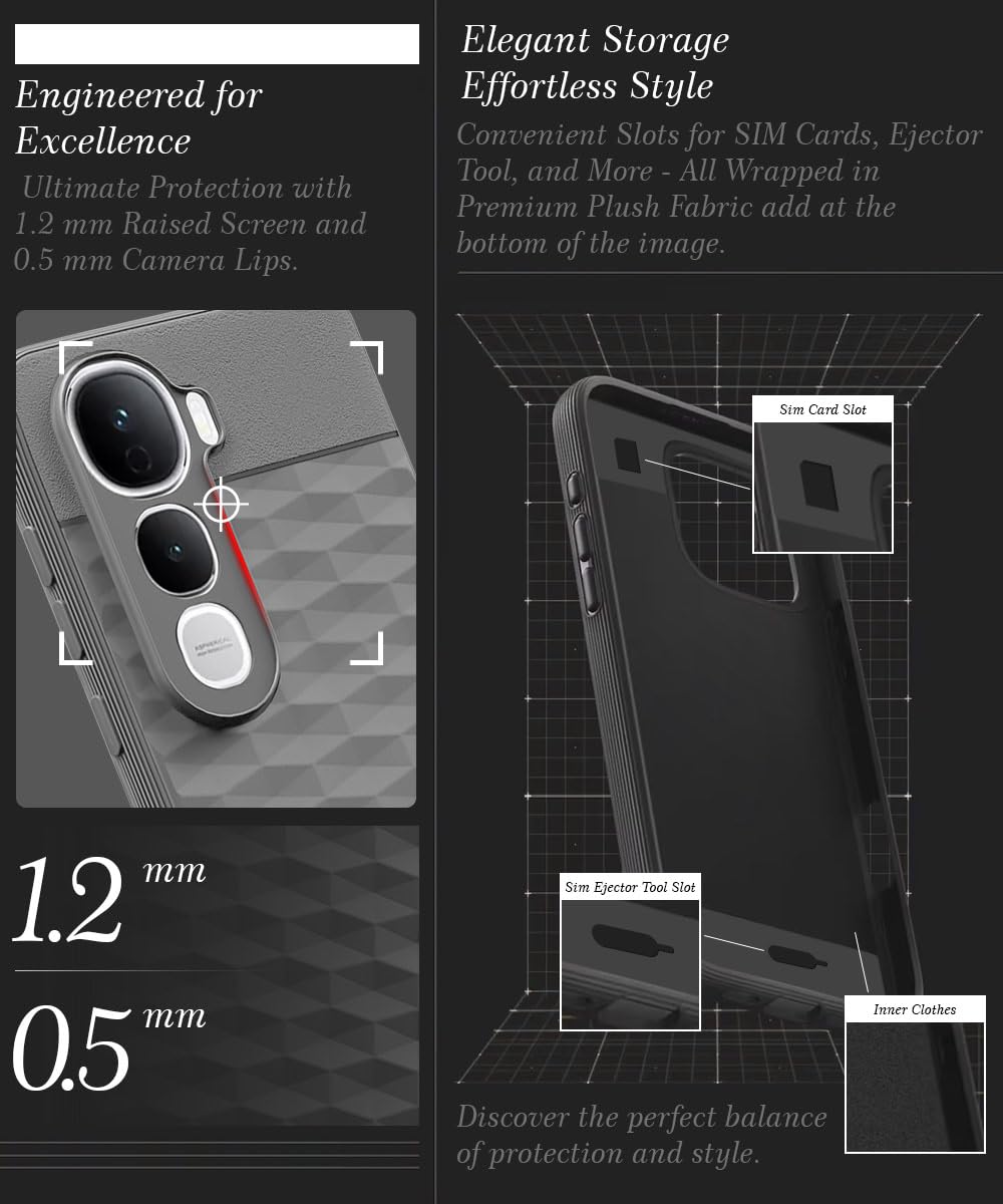 The Back Cover for Vivo Y400 Pro 5G with Hexa Cube Design | Ultra Slim Soft Rubberised Case | Inner Velvet Fabric | Matte Silicone Flexible Mobile Case | Camera Protection – Grey is designed with premium quality materials to provide superior protection, durability, and style for your smartphone. It offers a perfect balance between functionality and aesthetics, ensuring your device stays safe from scratches, impacts, and daily wear. Engineered with precision, it features accurate cutouts for ports, buttons, and cameras, making it highly convenient for everyday use. The slim and lightweight design ensures that your device retains its sleek profile without adding unnecessary bulk. Whether it is a nano film tempered glass, a hybrid back case, or a camera lens protector, each product is created with attention to detail to enhance the user experience and extend the life of your smartphone. The material used ensures long-lasting clarity, anti-scratch performance, and resistance against fingerprints and smudges. It is the ideal choice for users who want both style and substance in their smartphone accessories. This product from reflects innovation and craftsmanship, making it a reliable accessory that safeguards your investment while maintaining modern appeal.